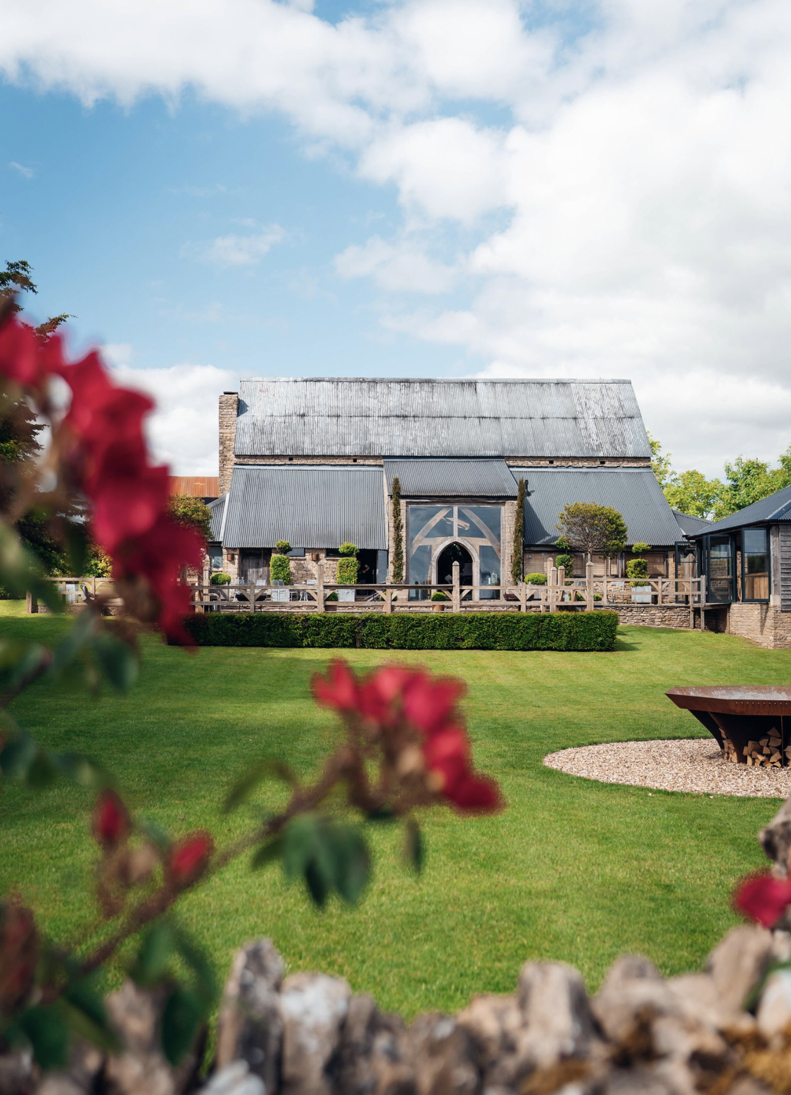 The Cripps & Co wedding barn is a unique venue in the Cotswolds, known for its beautiful countryside views and charming rustic style.