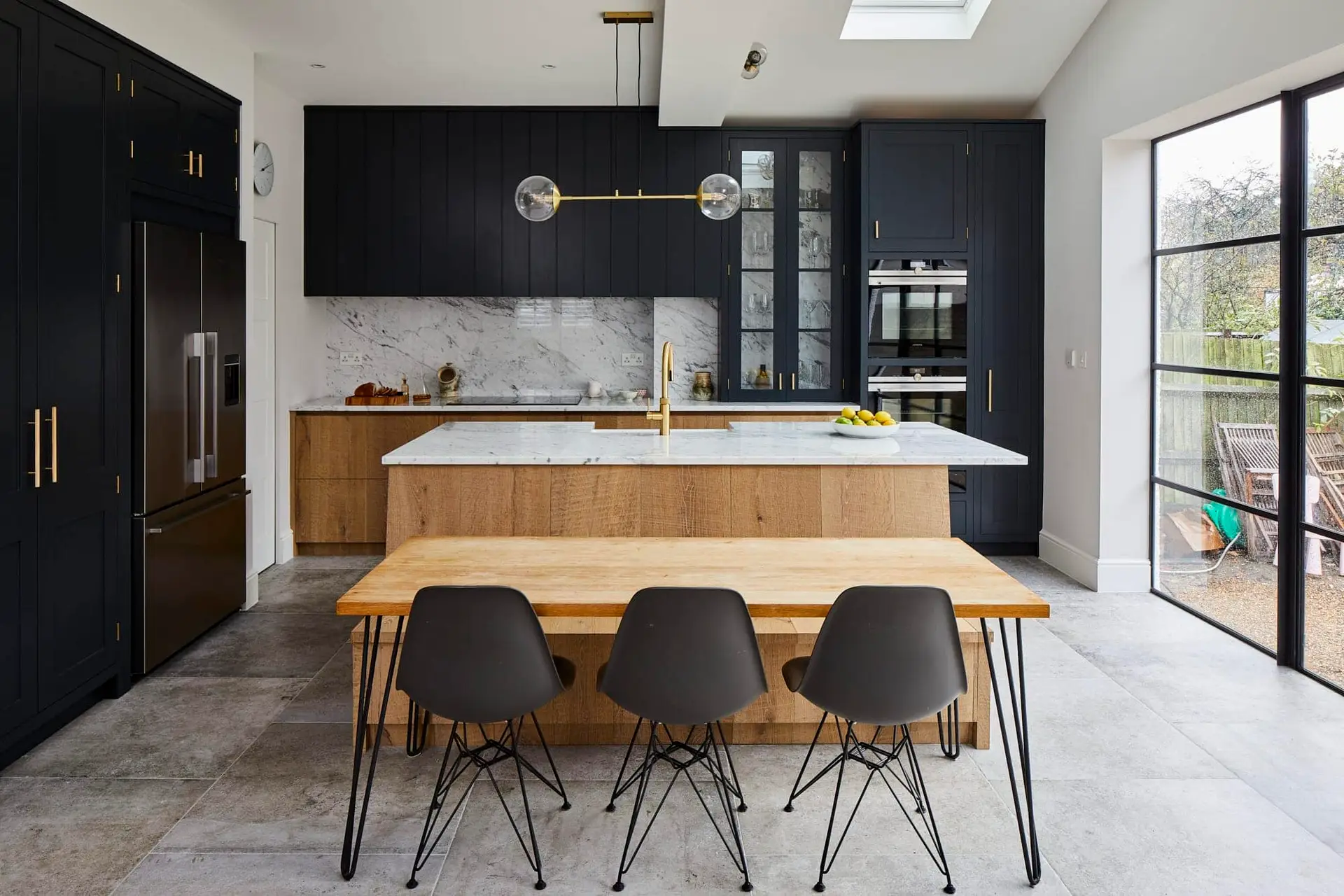 The full-width Crittall glazing became a dramatic design centrepiece, bathing the kitchen–diner in daylight and enhancing the sense of openness. It established a visual and physical connection to the garden, amplifying the success of the extension and showcasing the potential of bespoke glazing solutions.