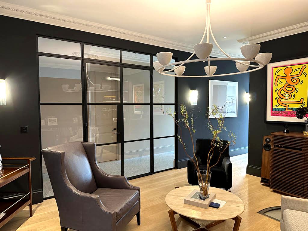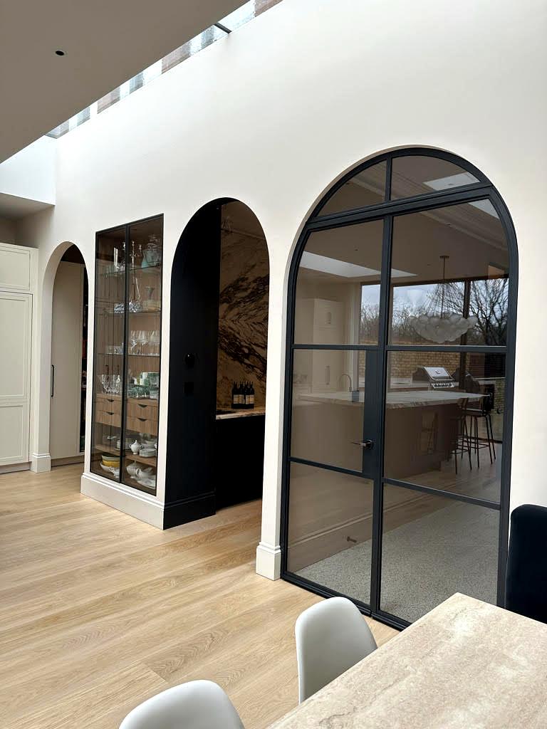 This London client originally wanted an arched feature for that opening, but since the space required a fire-rated door, we had to get creative. We collaborated closely with both the client and the designer to find a solution that would meet safety regulations without compromising on style. The result?